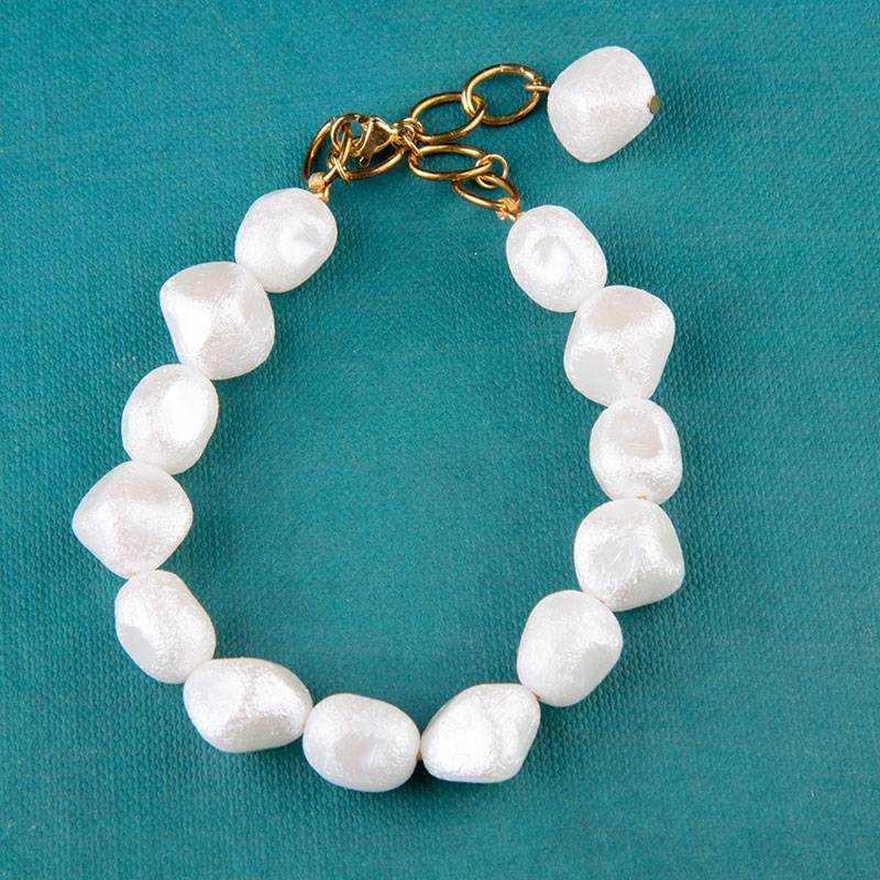 Βραχιόλι με ακρυλικές πέρλες απομίμηση μαργαριταριού και ατσάλινο κούμπωμα