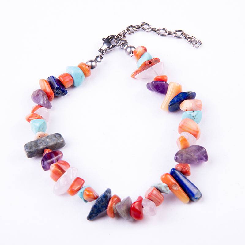 Βραχιόλι με τσιπς από ημιπολύτιμες πέτρες πολύχρωμο και ατσάλινο κούμπωμα