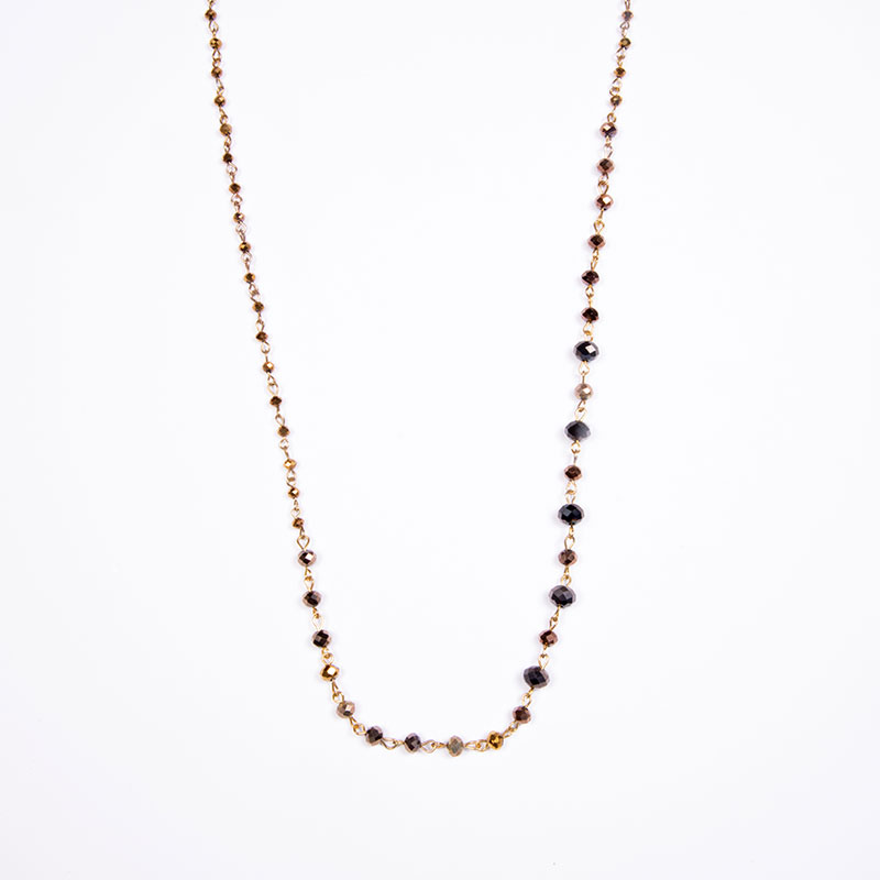 Κολιέ ροζάριο με χρυσές γράνες και μπρονζέ χρυσό κρυστάλλινες χάντρες 4mm, 6mm, 8mm