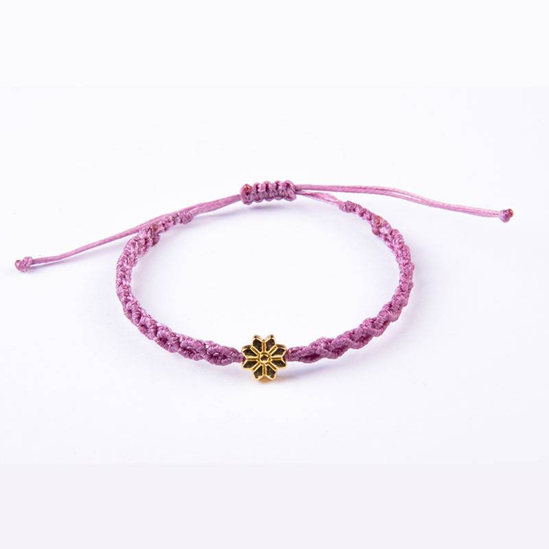 Μακραμέ βραχιόλι infinity με μεταλλικό στοιχείο λουλούδι, με κορδόνι κερωμένο λιλά, με αυξομείωση