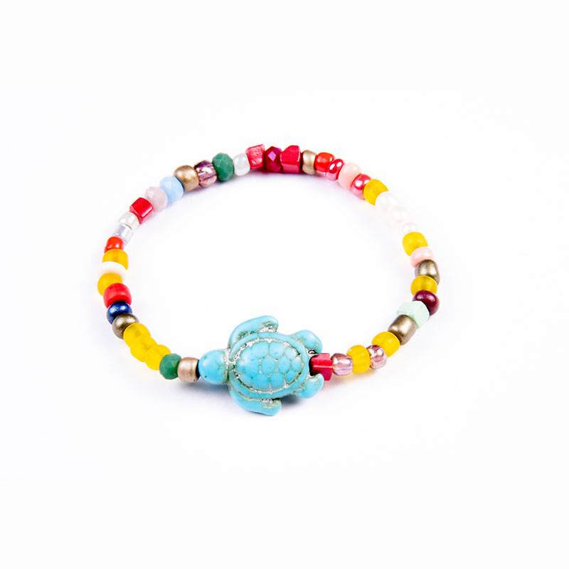 Παιδικό βραχιόλι με γυάλινες χάντρες πολύχρωμο, χελωνίτσα χάντρα από χαολίτη σε κορδόνι σιλικόνης