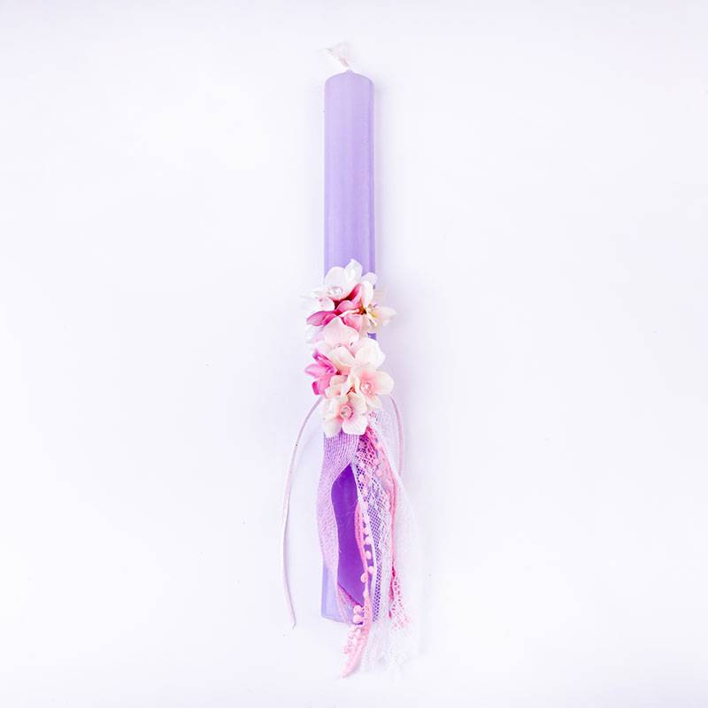 Πασχαλινή λαμπάδα 33cm με λουλούδια