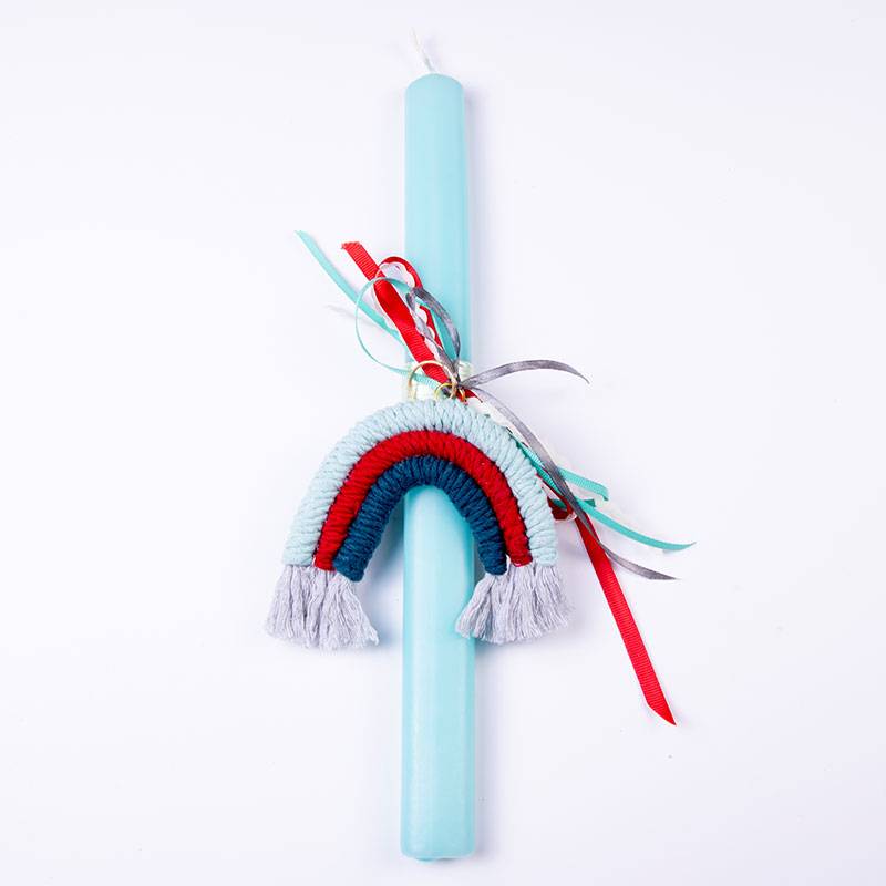 Πασχαλινή λαμπάδα 33cm με makrame rainbow