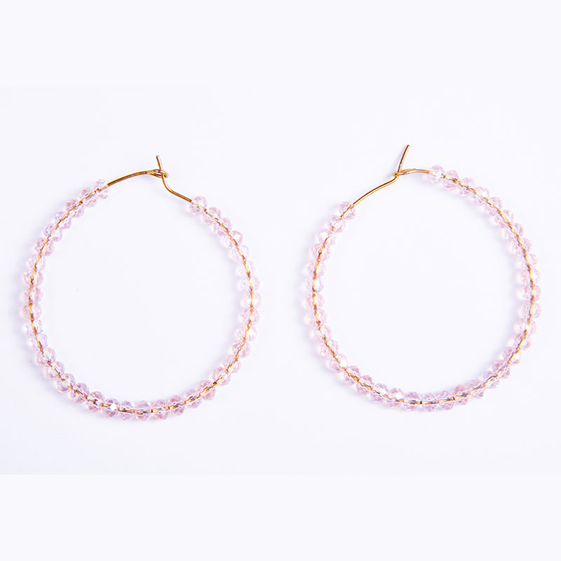 Σκουλαρίκια κρίκοι από memory wire επίχρυσα με κρυστάλλινες χάντρες 4mm ροζ ΑΒ