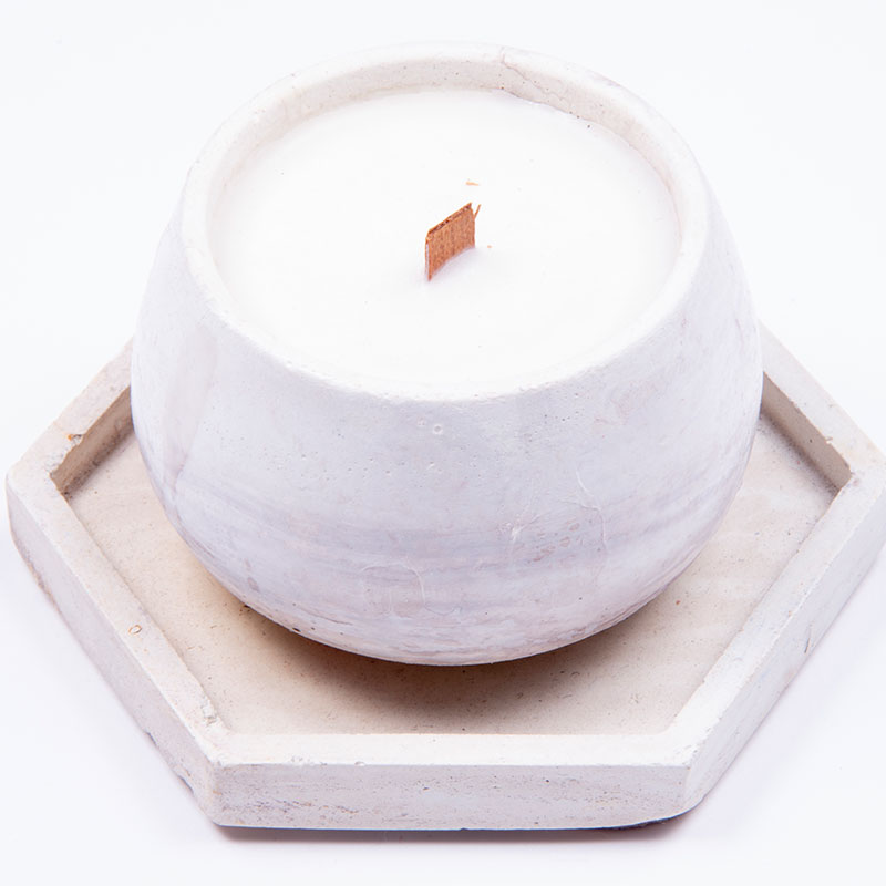 Χειροποίητο αρωματικό κερί σόγιας 100γρ με ξύλινο φυτίλι σε χειροποίητο τσιμεντένιο σκεύος και βάση πολύγωνη