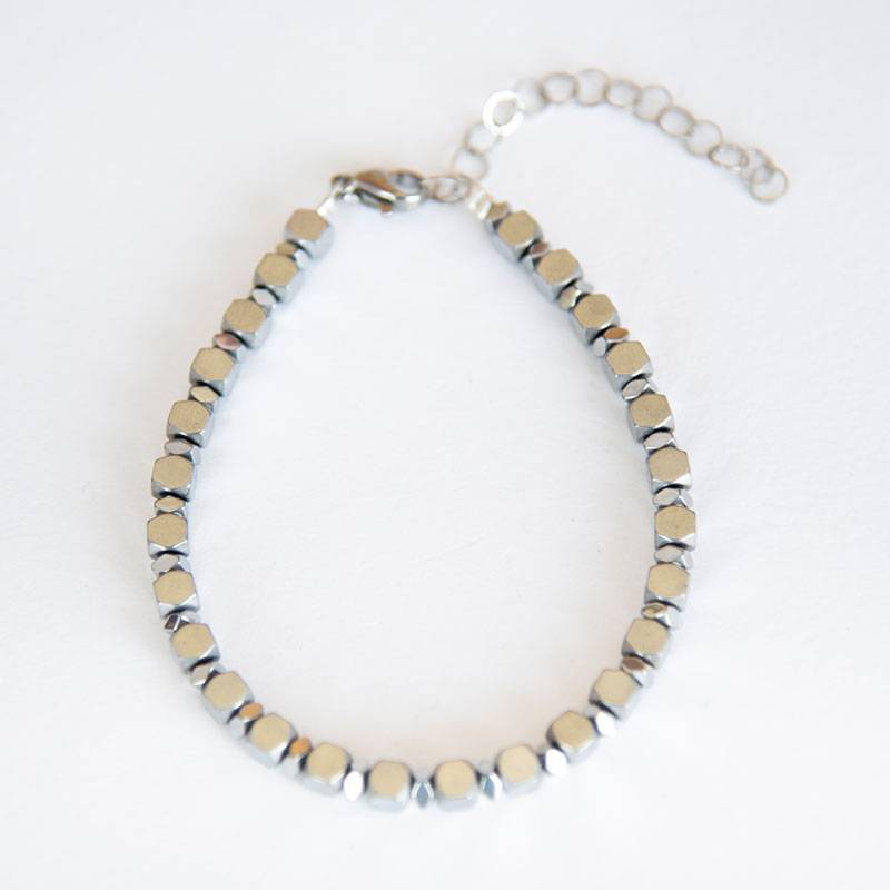 Βραχιόλι με αιματίτη τετράγωνο, ροδέλες αιματίτη τετράγωνες σε φυσικό χρώμα και ατσάλινο κούμπωμα