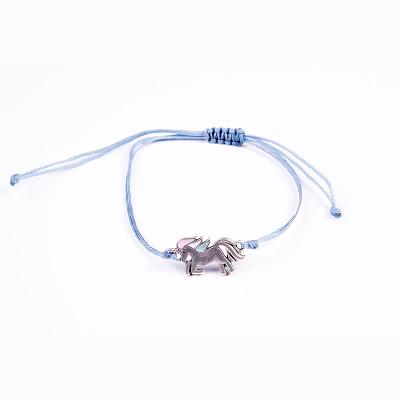 Βραχιόλι με επάργυρο μοτίφ μονόκερο με σμάλτο λεπτομέρεια σε γαλάζιο κερωμένο κορδόνι με αυξομείωση