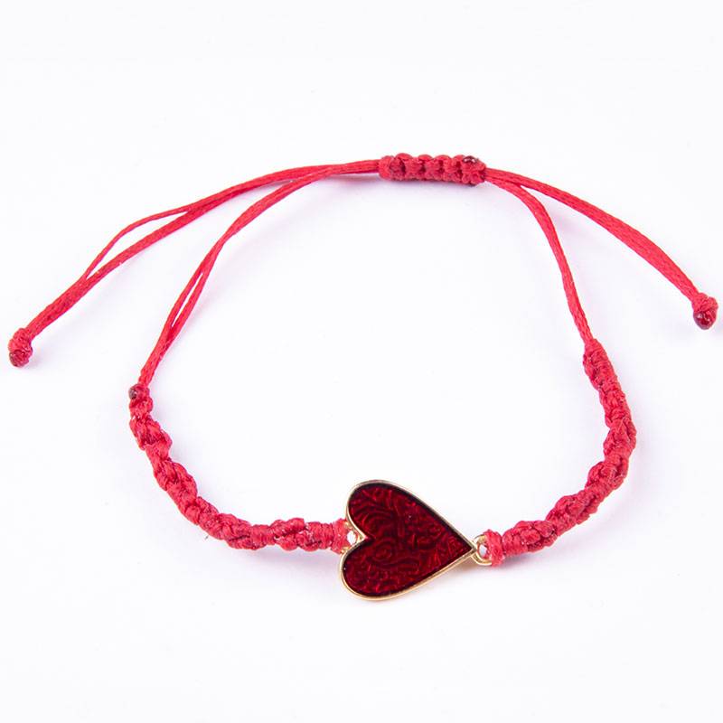 Βραχιόλι με επίχρυσο μοτίφ 24K καρδιά κόκκινο σμάλτο σε κόκκινο κερωμένο κορδόνι, με αυξομείωση