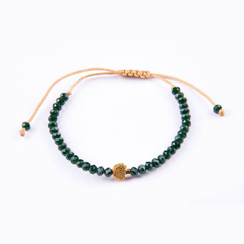 Βραχιόλι με κρυστάλλινες χάντρες πράσινες 4mm και μεταλλικό μοτίφ χρυσό δέντρο της ζωής, κλείνει με αυξομείωση