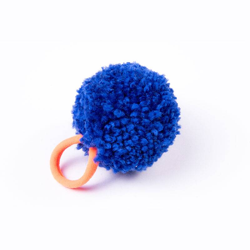 Λαστιχάκι για τα μαλλιά πορτοκαλί με χειροποίητο pom pom μπλε