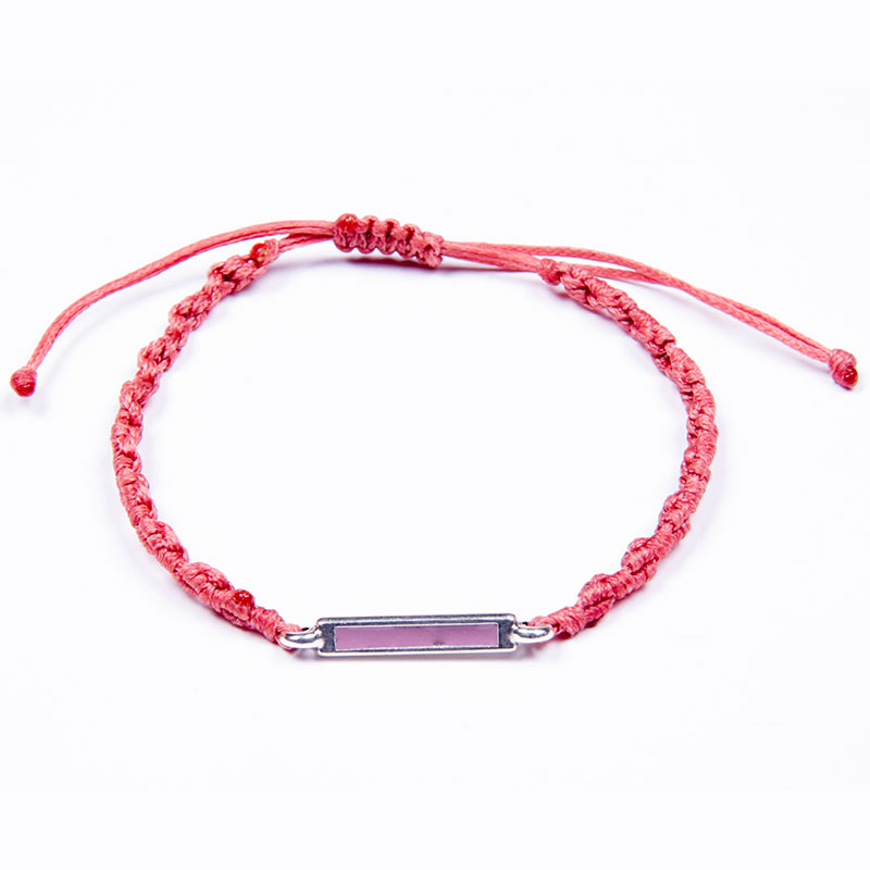 Χειροποίητο μακραμέ βραχιόλι με μπάρα μοτίφ ασημί με μωβ σμάλτο, με κοραλλί κερωμένο κορδόνι