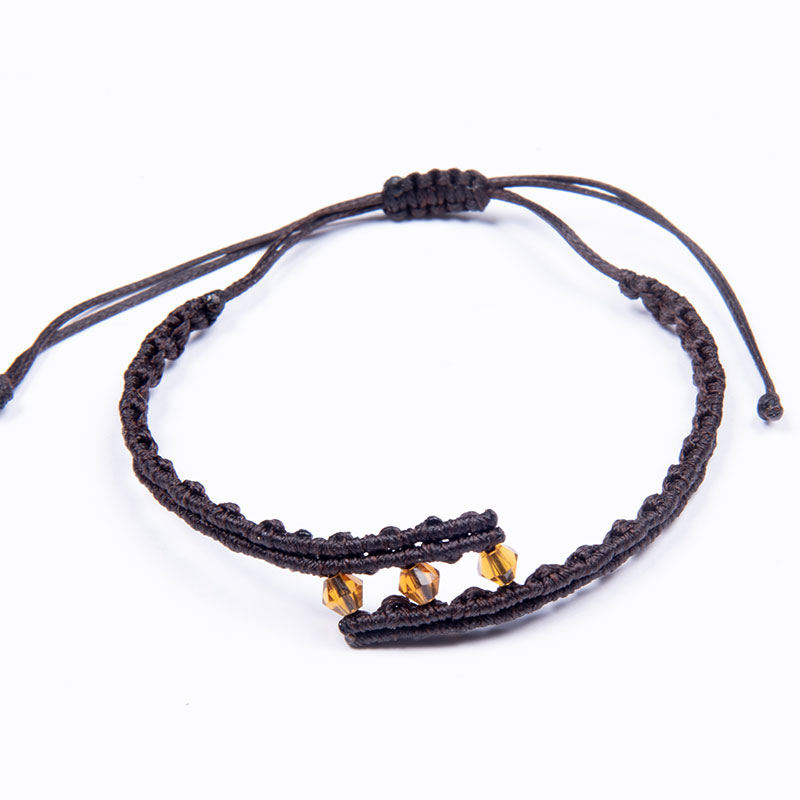 Χειροποίητο μακραμέ βραχιόλι "lines" με κρυσταλλάκια 4mm σαμπανί διάφανο με σκούρο καφέ κερωμένο κορδόνι