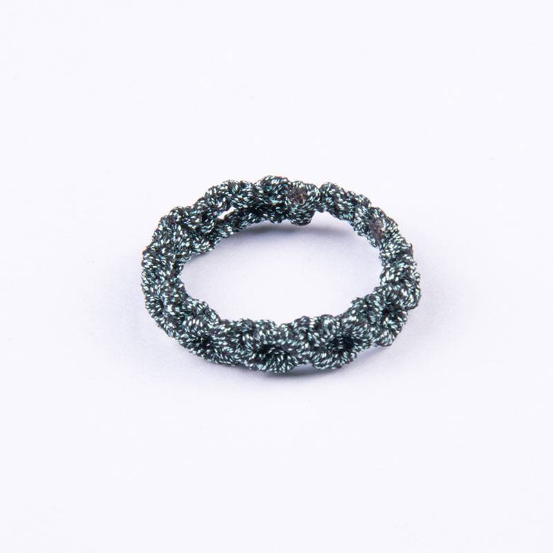 Μακραμέ δαχτυλίδι infinity με μεταλλικό πράσινο κορδόνι